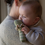 Soft on delicate skin and kind to the planet, our Friendly Frog Rattle makes a thoughtful keepsake for newborns. Pair with our Knitted Little Hands Toys and Cuddle Cloths for a charming matching set.
