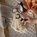Meet your little one’s first friend - our Patient Puffin Organic Cotton Rattle. Designed for tiny hands to grip, shake and squish, this sweet rattle brings joy to playtime while helping develop early motor skills. With its gentle sound, soft texture and adorable neck ruff this rattle makes an adorable new baby gift.