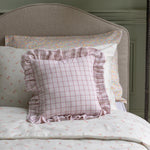 Square Linen Frill Cushion - Pink Check