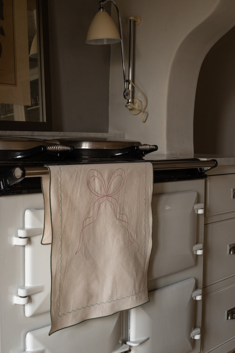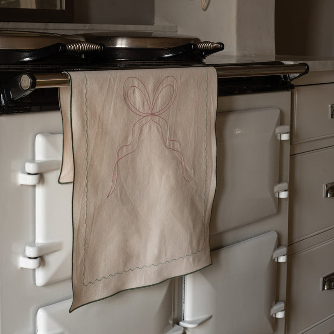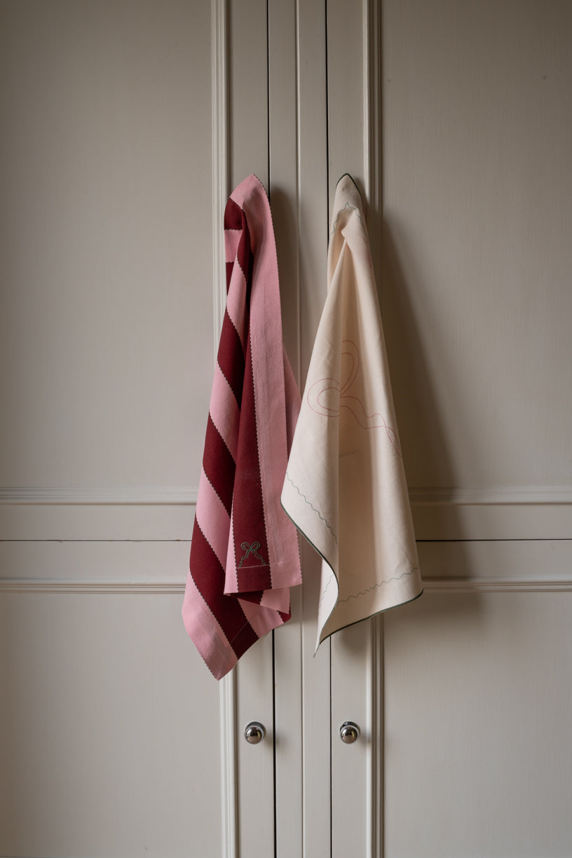 Add a festive touch to your kitchen with our Set of 2 Organic Cotton Christmas Tea Towels, crafted from 100% organic cotton. Designed with a playful pink and red stripe, dark green edging, and a delicate embroidered bow, these tea towels are as stylish as they are practical. Soft, absorbent, and finished with a hanging loop, they’re made to be used and loved year after year.